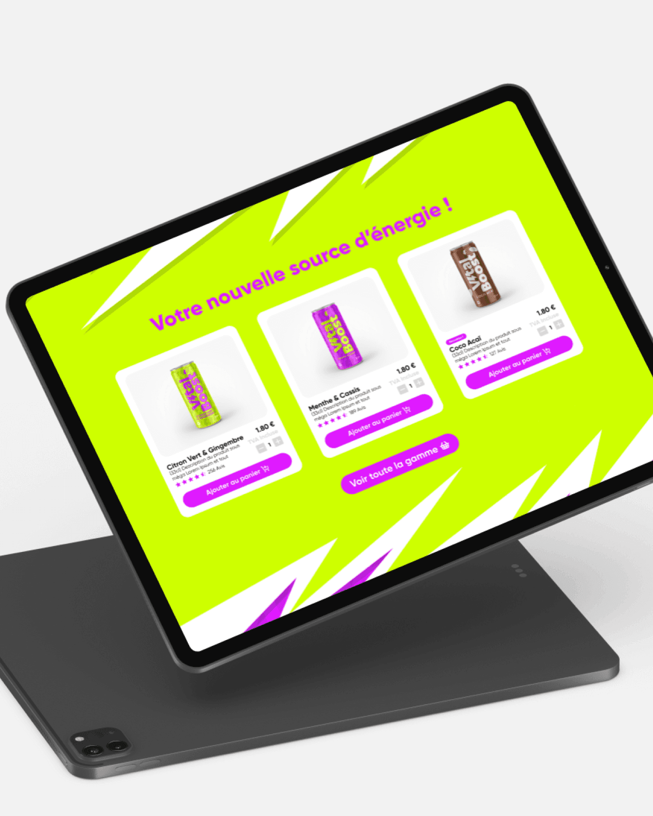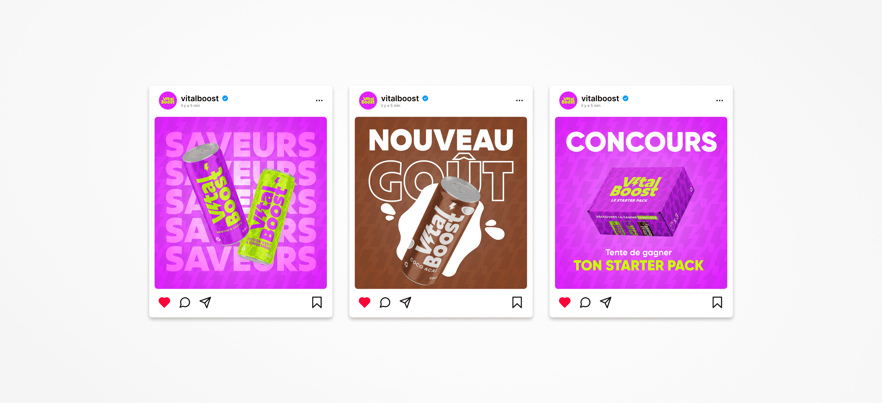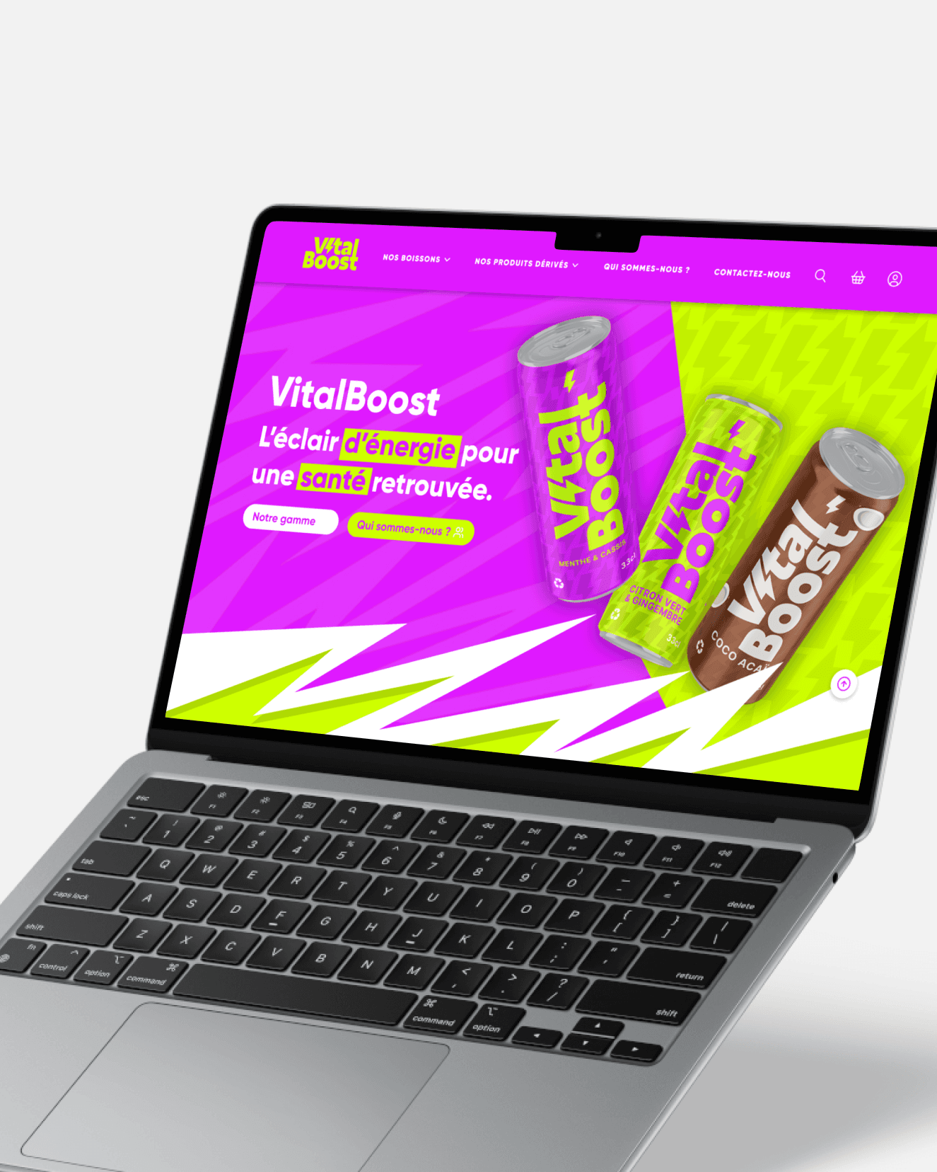 VitalBoost est un projet de création de marque autour d’une boisson énergisante pensée autrement. L’objectif était de s’éloigner des codes classiques du marché pour proposer une identité plus maîtrisée et plus actuelle.