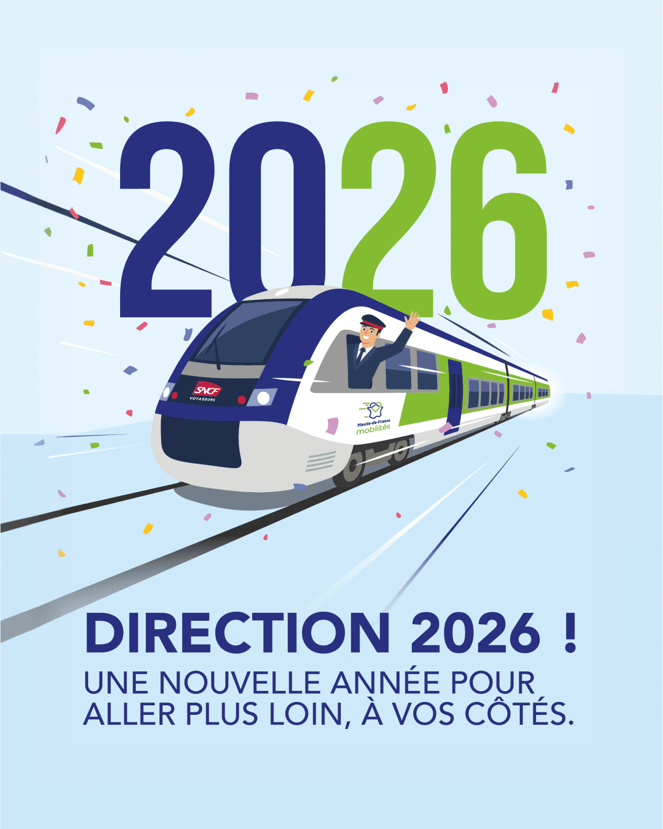 Le projet repose sur la création d’un visuel master au format A4, pensé pour transmettre un message de vœux simple, positif et immédiatement lisible. L’objectif était de proposer une création institutionnelle plus vivante, capable de rester cohérente avec les codes visuels de la SNCF TER Hauts-de-France tout en apportant une énergie plus festive et engageante.